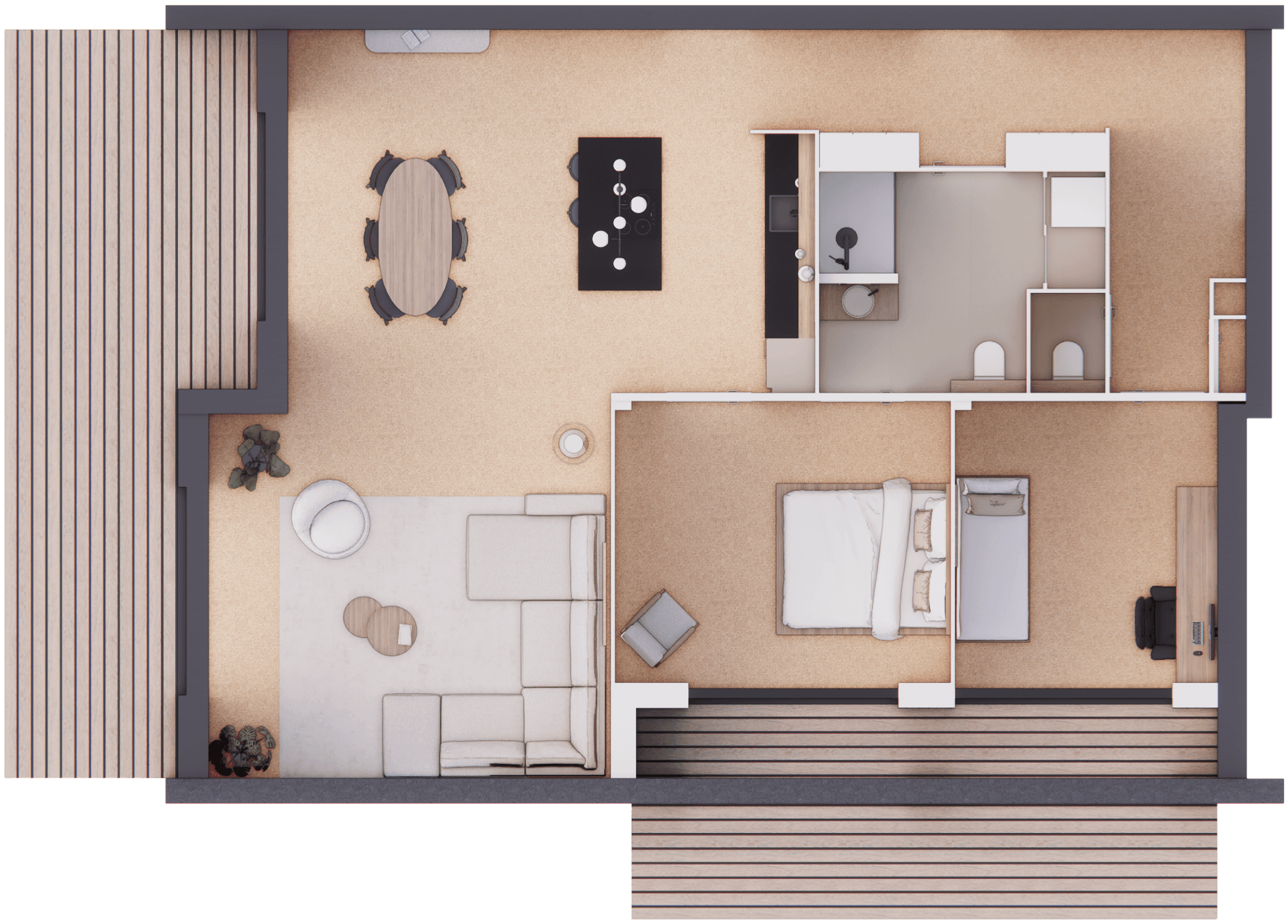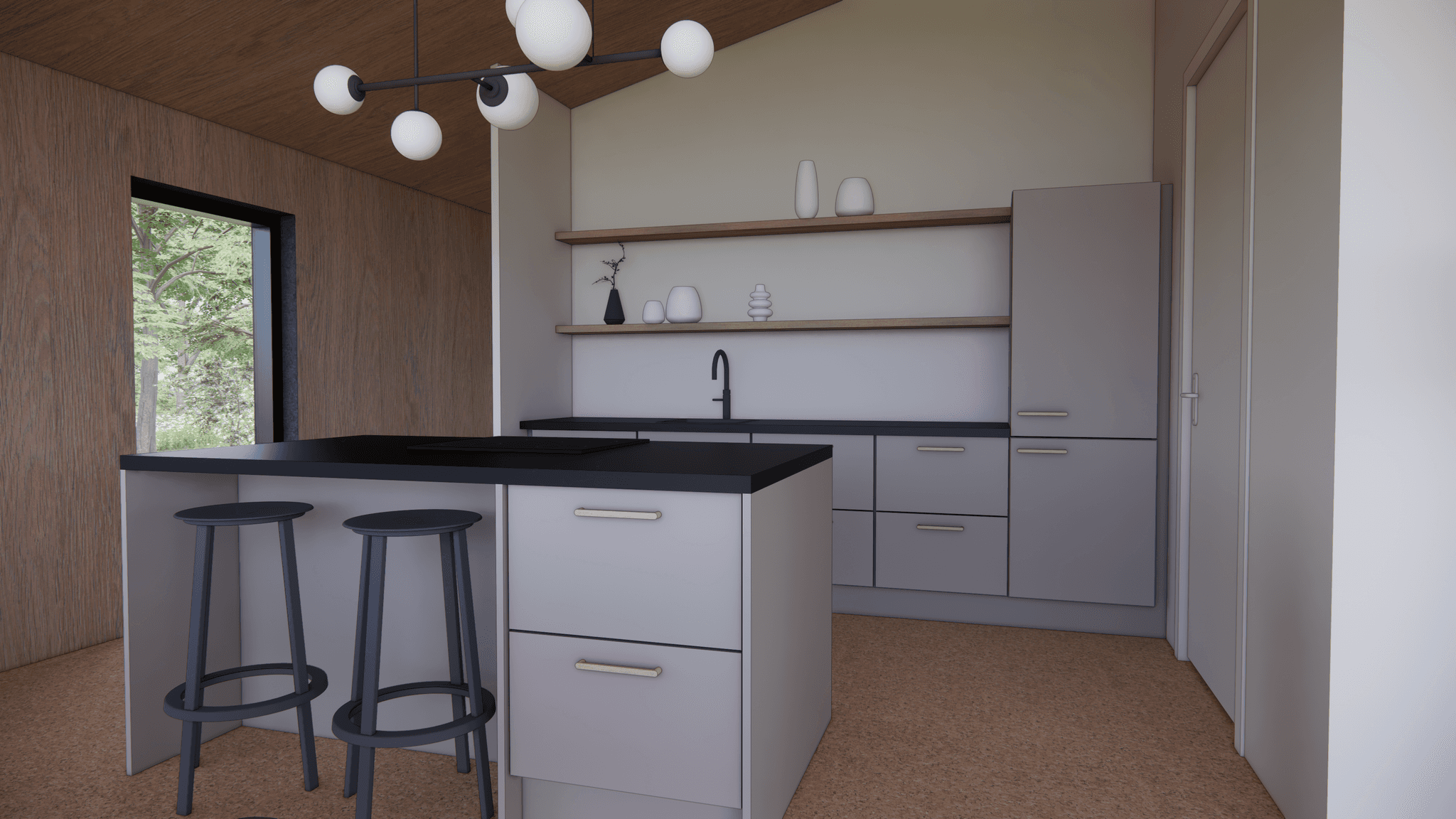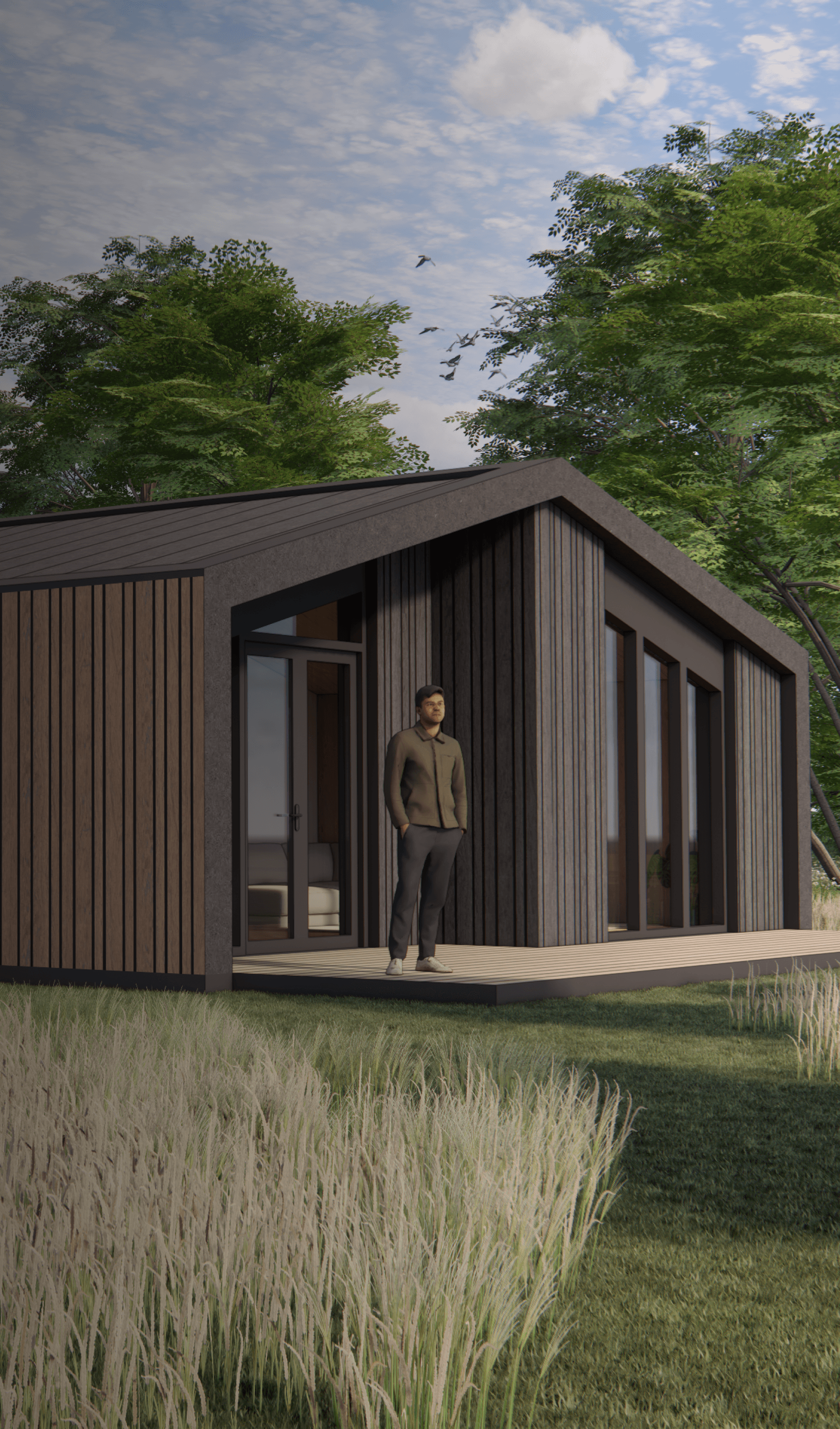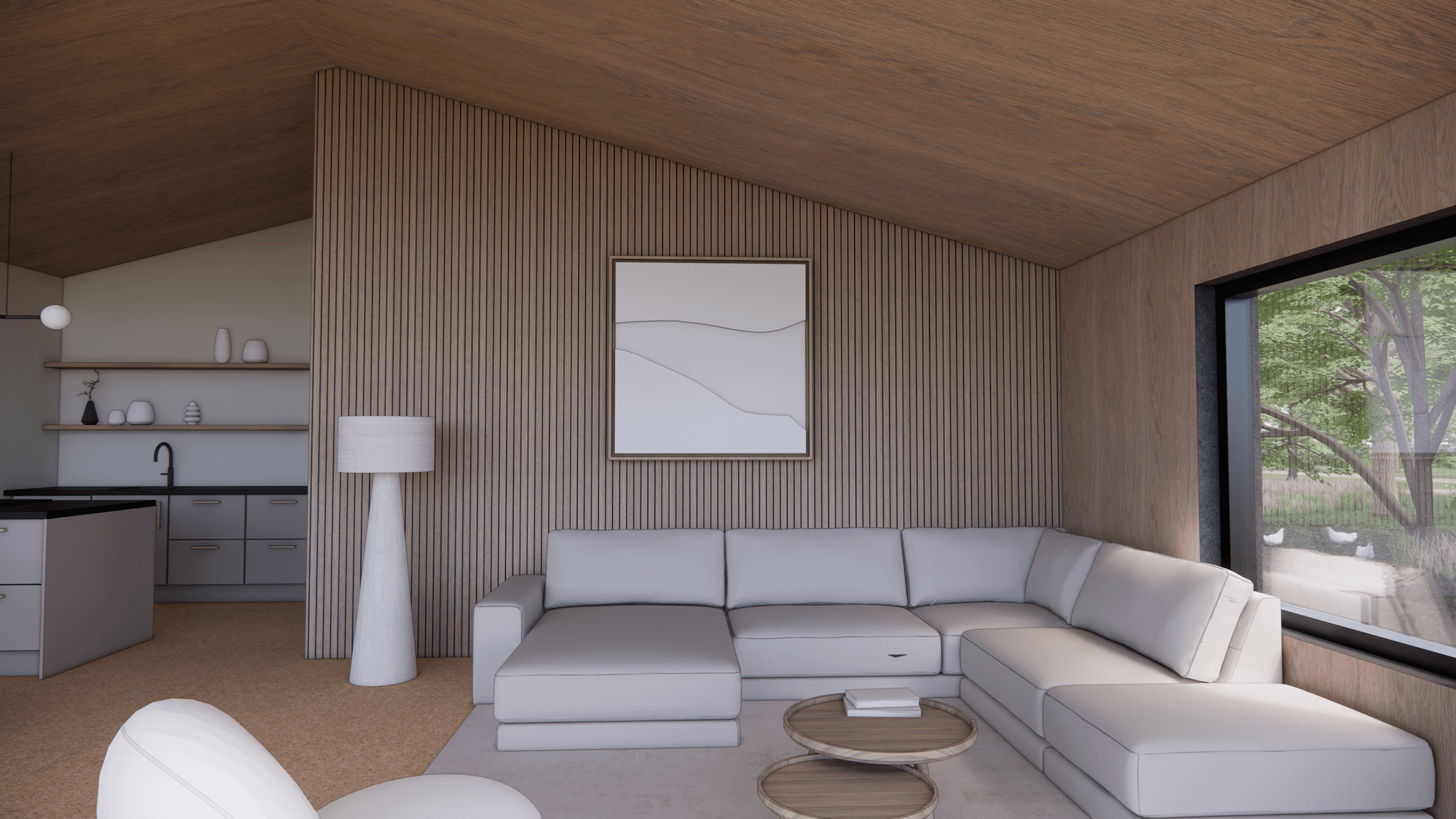 De Millhome 100 heeft één woonlaag met een open leefruimte als het hart van het huis. Wonen, eten en koken lopen hier vloeiend in elkaar over. Grote ramen en openslaande deuren naar de vlonders zorgen voor veel daglicht en een fijne verbinding met buiten.